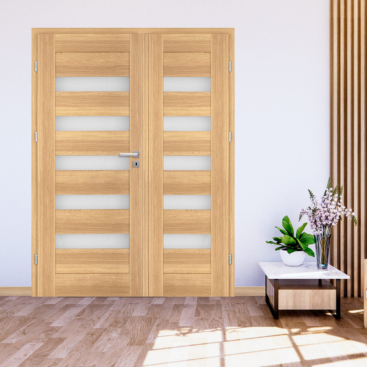Код двокрилних асиметричних врата, активно крило је шире од пасивног крила, што пружа елегантну и квалитетну опцију за дом и канцеларију. Врата се могу направити и без фалца.