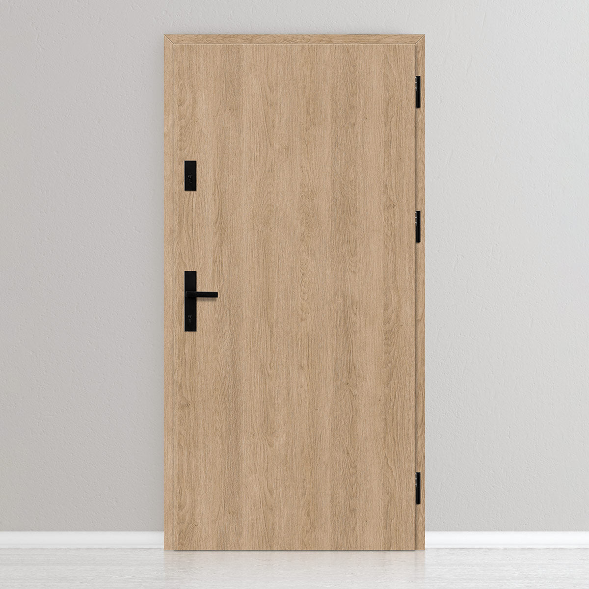 Врата су израђена од поцинкованог челичног лима дебљине 0,6мм и ПВЦ облога. Крило је испуњено полиуретанском пеном густине 750г/м3, а рам је од лепљеног боровог дрвета. ПВЦ премаз карактерише висока отпорност на промене временских услова, УВ зрачење и механичка оштећења. Текстура прилагођена декоративном мотиву ствара производ високе естетске вредности, поред његових безбедносних и провалних квалитета.