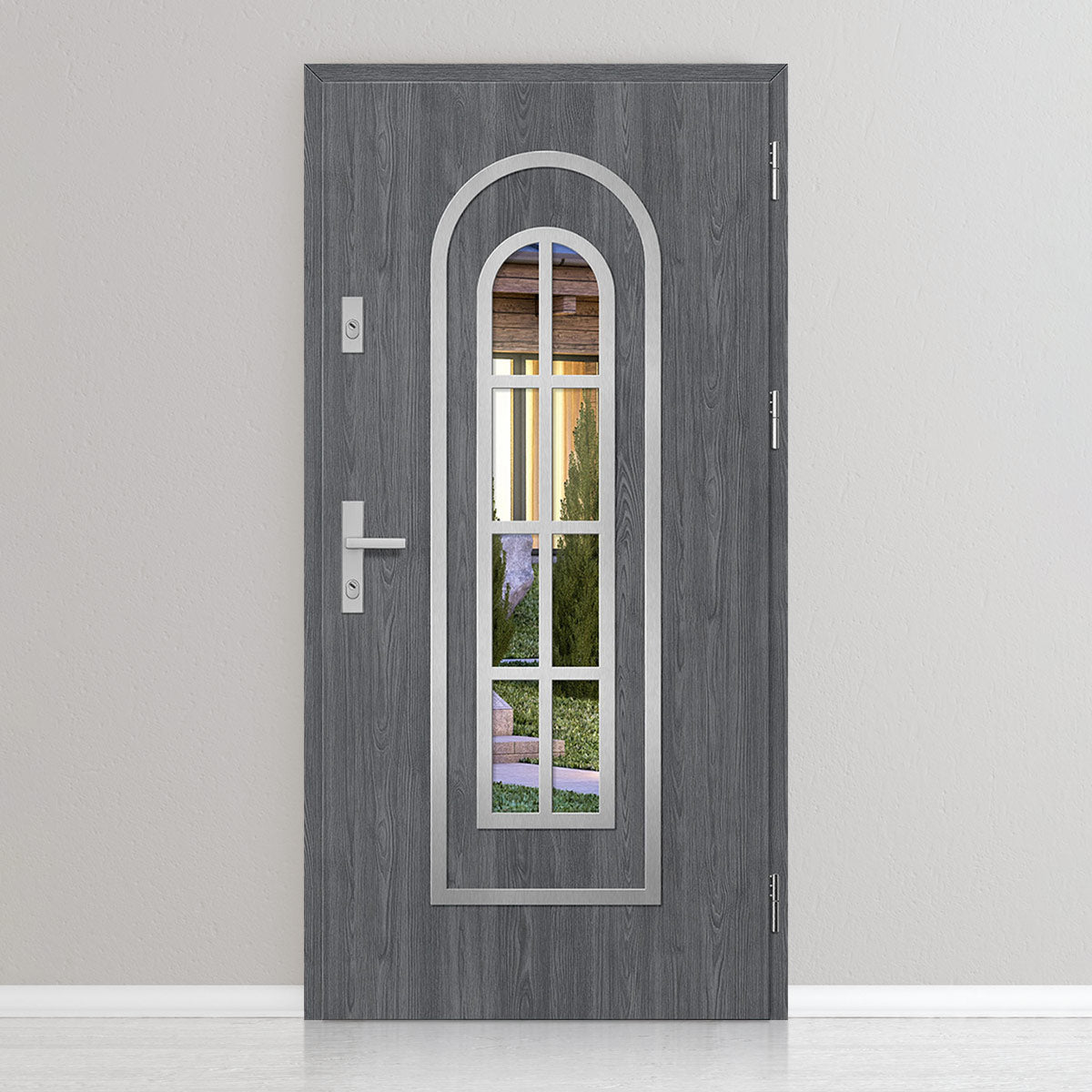 Врата су израђена од поцинкованог челичног лима дебљине 0,6мм и ПВЦ облога. Крило је испуњено полиуретанском пеном густине 750г/м3, а рам је од лепљеног боровог дрвета. ПВЦ премаз карактерише висока отпорност на промене временских услова, УВ зрачење и механичка оштећења. Текстура прилагођена декоративном мотиву ствара производ високе естетске вредности, поред његових безбедносних и провалних квалитета.