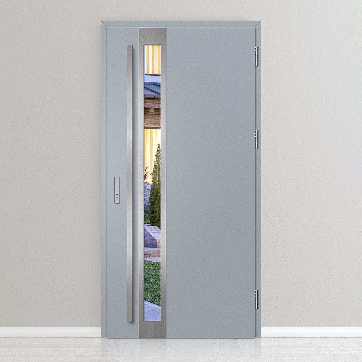 Врата су израђена од поцинкованог челичног лима дебљине 0,6мм и ПВЦ облога. Крило је испуњено полиуретанском пеном густине 750г/м3, а рам је од лепљеног боровог дрвета. ПВЦ премаз карактерише висока отпорност на промене временских услова, УВ зрачење и механичка оштећења. Текстура прилагођена декоративном мотиву ствара производ високе естетске вредности, поред његових безбедносних и провалних квалитета.