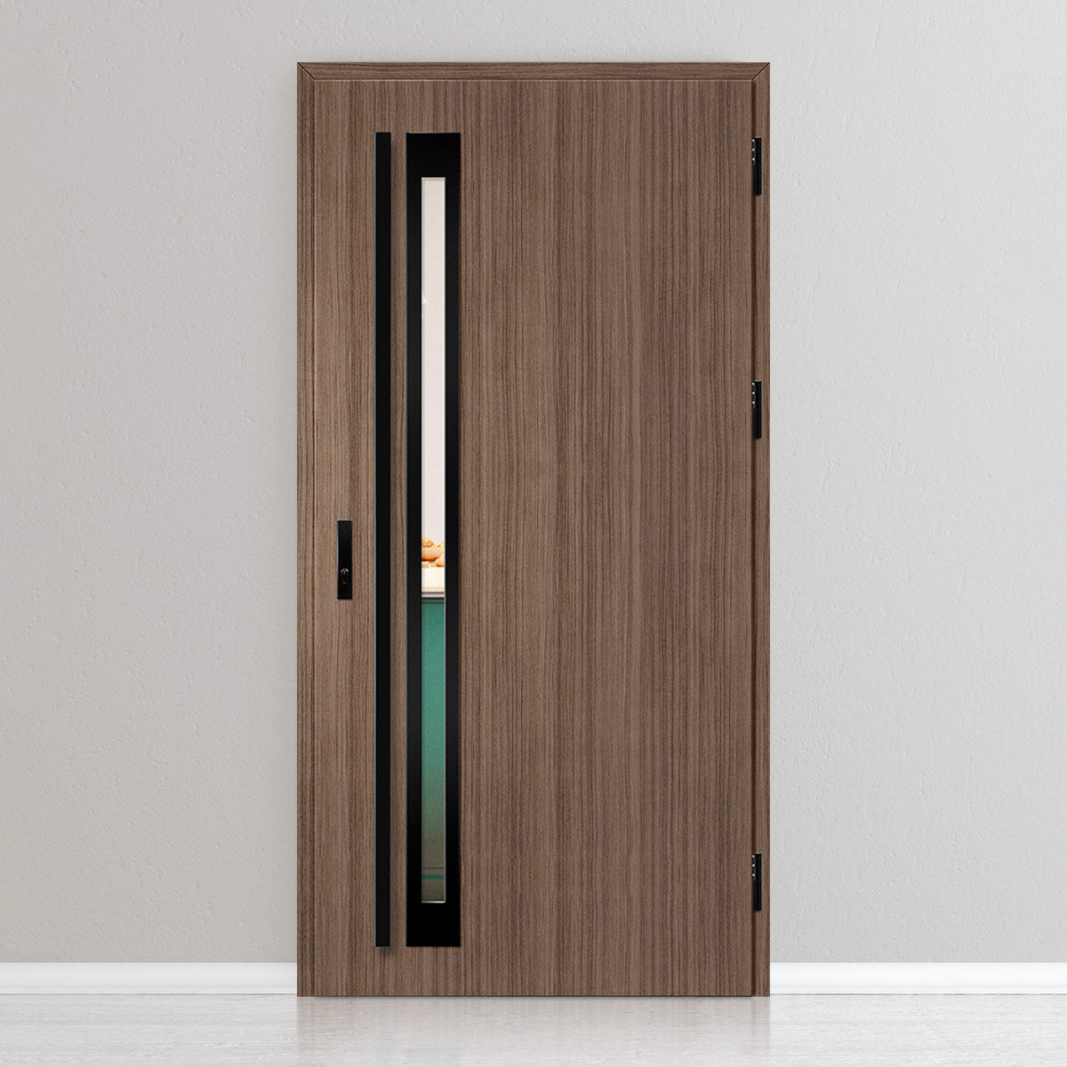 Врата су израђена од поцинкованог челичног лима дебљине 0,6мм и ПВЦ облога. Крило је испуњено полиуретанском пеном густине 750г/м3, а рам је од лепљеног боровог дрвета. ПВЦ премаз карактерише висока отпорност на промене временских услова, УВ зрачење и механичка оштећења. Текстура прилагођена декоративном мотиву ствара производ високе естетске вредности, поред његових безбедносних и провалних квалитета.