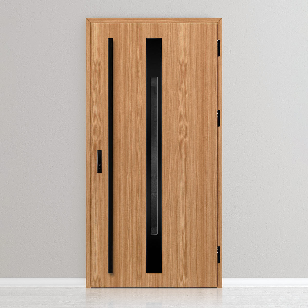 Врата су израђена од поцинкованог челичног лима дебљине 0,6мм и ПВЦ облога. Крило је испуњено полиуретанском пеном густине 750г/м3, а рам је од лепљеног боровог дрвета. ПВЦ премаз карактерише висока отпорност на промене временских услова, УВ зрачење и механичка оштећења. Текстура прилагођена декоративном мотиву ствара производ високе естетске вредности, поред његових безбедносних и провалних квалитета.
