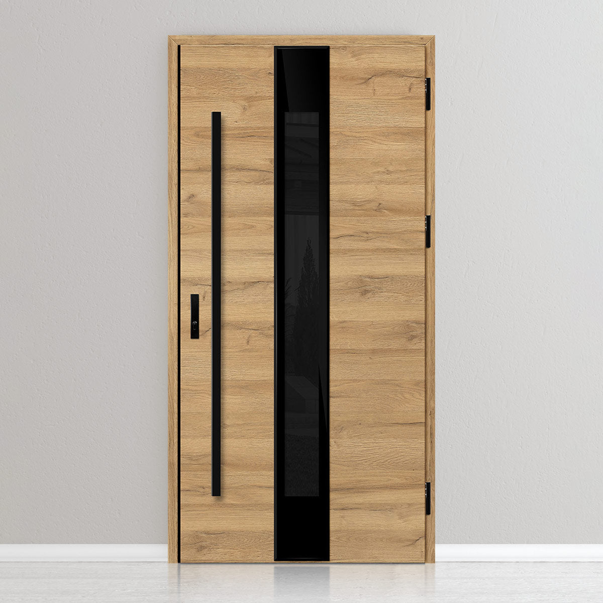 Врата су израђена од поцинкованог челичног лима дебљине 0,6мм и ПВЦ облога. Крило је испуњено полиуретанском пеном густине 750г/м3, а рам је од лепљеног боровог дрвета. ПВЦ премаз карактерише висока отпорност на промене временских услова, УВ зрачење и механичка оштећења. Текстура прилагођена декоративном мотиву ствара производ високе естетске вредности, поред његових безбедносних и провалних квалитета.
